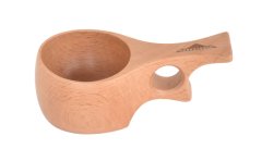 北欧のラップランド地方に伝わる木製工芸品のククサ(Kuksa)をブナ材でかたどったオリジナルの木製カップ。Kuksaを送られた相手は幸せになれると言い伝えられています。アウトドアの雰囲気にピッタリの人気のククサカップは皮ひも付きなので、リュックやテントに吊り下げることもできます。手触りの良いすべすべした感覚と、上からつかんでも、横から握っても持ちやすい2つ穴のハンドルが特徴です。