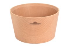 登山用品専門のメーカーと共同で開発して生まれた木製のカップ。金属製のカップの収納できるサイズ感です。粘り気のある?の特性を活かした、使い勝手の良い木製カップは料理にも飲み物にもぴったりです。熱々のスープ、炊き立てのご飯。冷たい水で作った水割りに、淹れたてのコーヒー。裏面のくぼみもあるので、片手で握りやすい形状です。